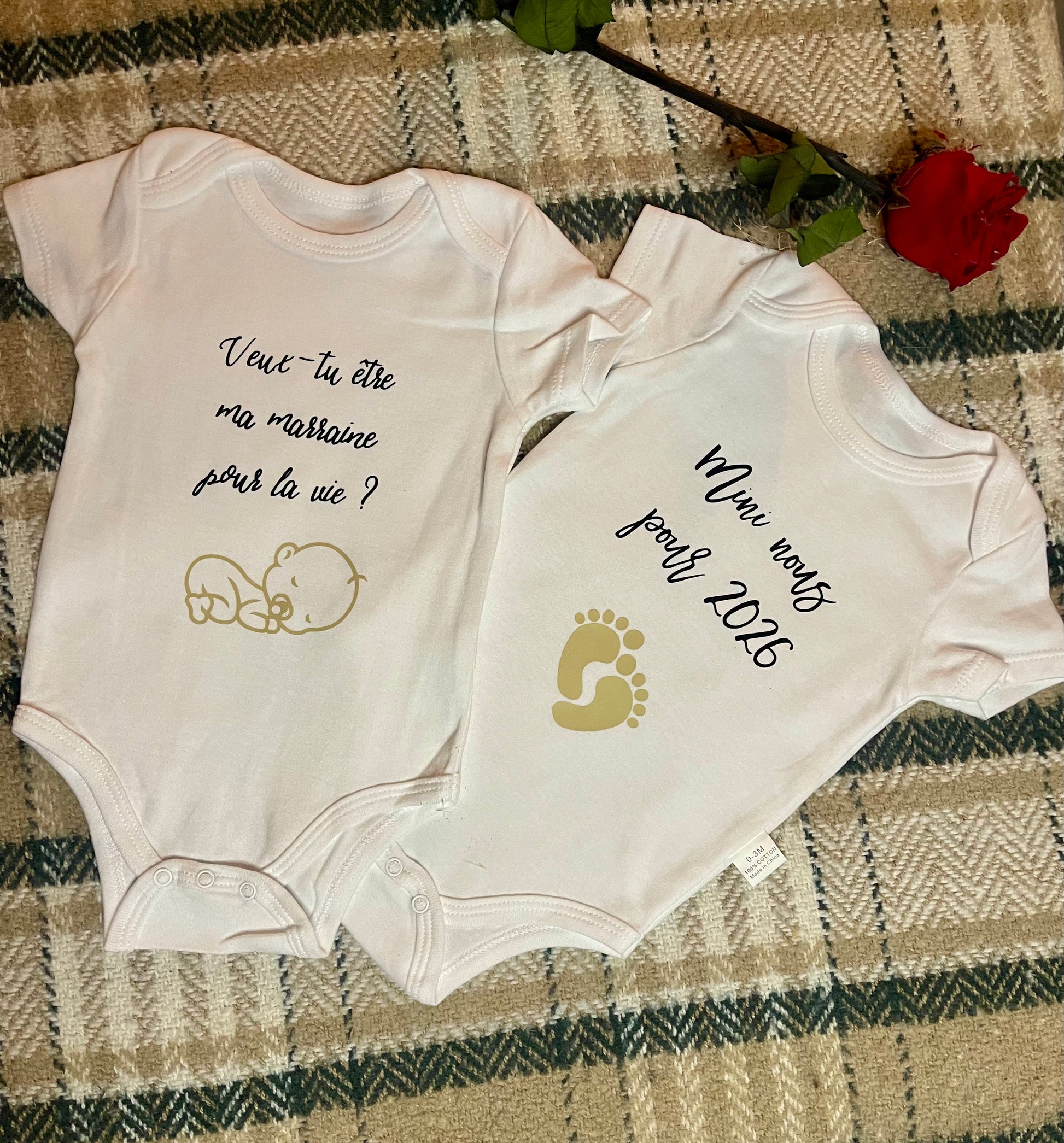 Faites une annonce pleine d’émotion avec notre body bébé personnalisé par flocage !